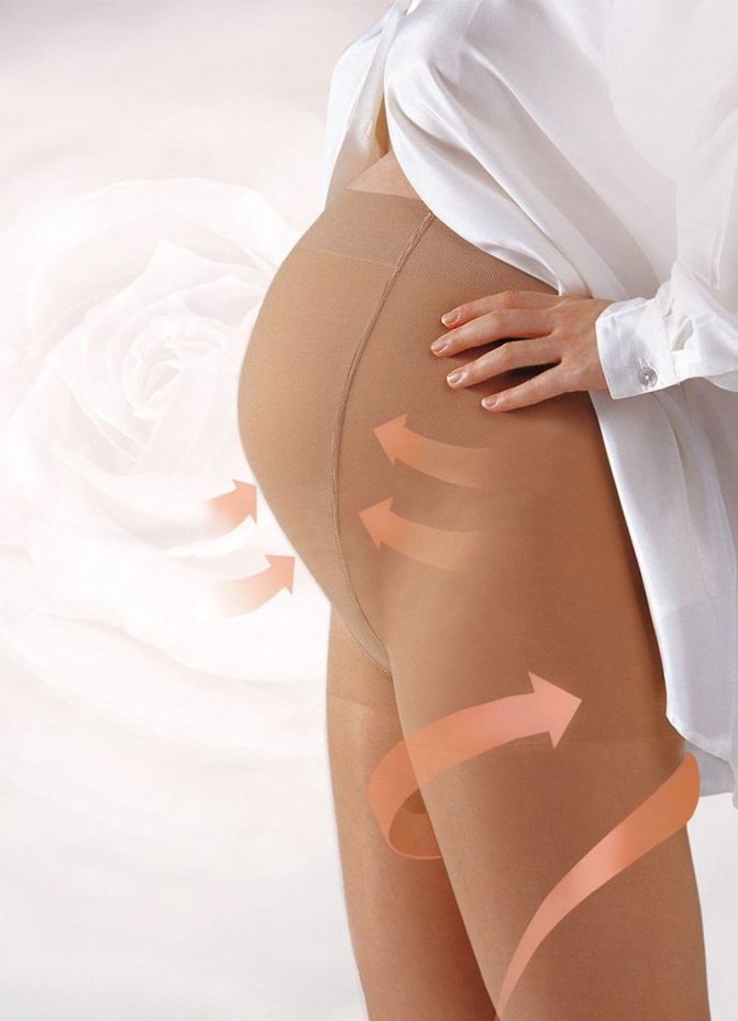 Изделия, относящиеся к профилактическому классу, оказывают компрессию на нижние конечности от 15 до 18 мм рт. ст. Их используют при отсутствии варикоза до беременности, но при наличии факторов, предрасполагающих к нему (наследственной отягощенности, длительного нахождения в вертикальном положении в течение дня, ожирении). Трикотаж 1 класса компрессии (18–21 мм рт. ст.) используется женщинами с начальными признаками хронического расширения вен (отечность ног, телеангиэктазии). Колготки, чулки 2 класса оказывают компрессию 22–32 мм рт. ст., их необходимо носить беременным с крупными варикозными узлами на ногах. Изделия 3 класса (33–46 мм рт. ст.) обычно используются только в стационарных условиях, их применяют при наличии осложнений варикоза (посттромбофлебитического синдрома, трофических язв).