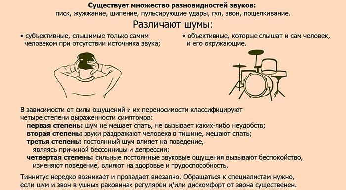 Шум может быть вибрационным, который создаётся элементами органа слуха, и невибрационным, вызванным раздражением нервных окончаний.