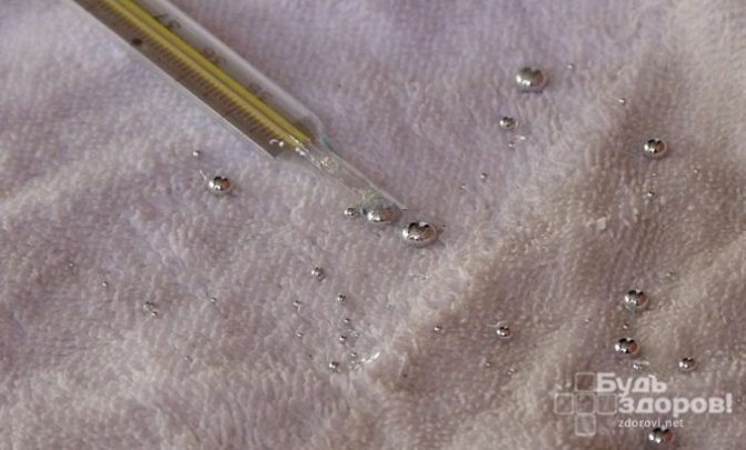 Основную опасность представляет вытекшая из разбитого градусника ртуть