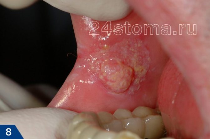 - раздирания слизистой пищей, зубной щеткой или любым приспособлением гигиены;