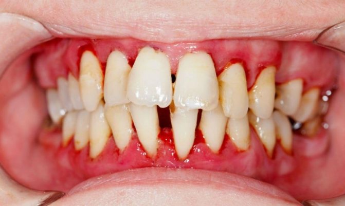 - кровоточивостью, развивающимся при приеме пищи и гигиенической процедуре;