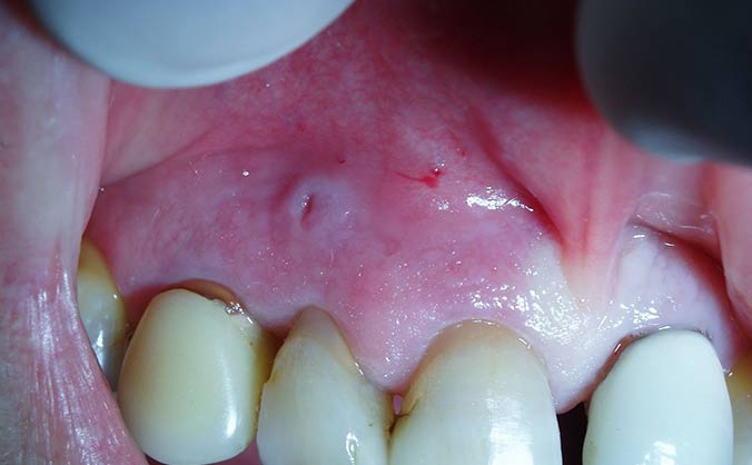 Когда люди говорят про нарост на десне, они обычно имеют в виду кисту, которая нередко появляется безо всяких видимых причин. Если нарост не болит при надавливании, то его называют эпулис (или наддесневик). Если его вскрыть, то из нароста выделяется рыхлая масса или вытекает жидкое содержимое. Без своевременной терапии образование рано или поздно само вскрывается, трансформируясь в небольшую опухоль с отверстием на поверхности, из которого свищевой ход идет в толщу кисты. Из образовавшегося свища периодически происходит выделение сукровицы или гноя. При этом общее состояние больного также страдает: его беспокоят головные боли, потеря жизненных сил, а лимфоузлы вблизи очага инфекции (челюстные, шейные или ушные) обычно увеличены и болезненны.