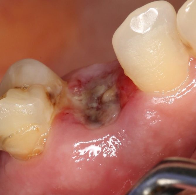- Если заболевание затронуло костную ткань, проводится препарирование пораженной области до здоровых тканей.