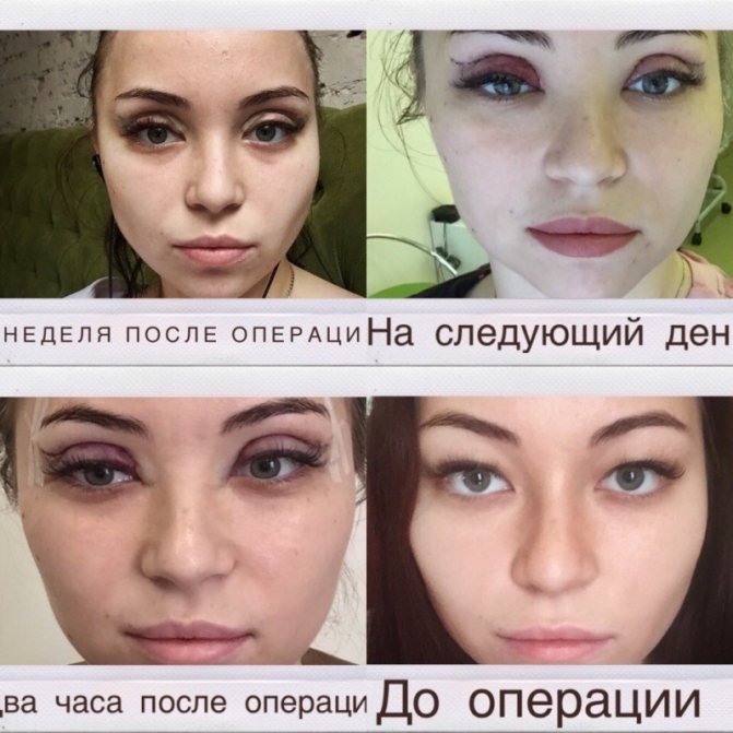 Нормальным явлением считается послеоперационная припухлость и гематомы в области глаз. Это реакция организма на оперативное вмешательство и наложение швов. В течение нескольких недель возможны слезотечение, сухость глаз, небольшое жжение. Как вариант нормы рассматривается формирование тонких, почти незаметных рубцов на месте разреза.