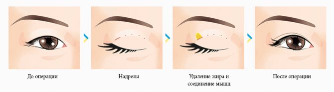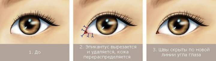 Различают три вида операции азиатских глаз: