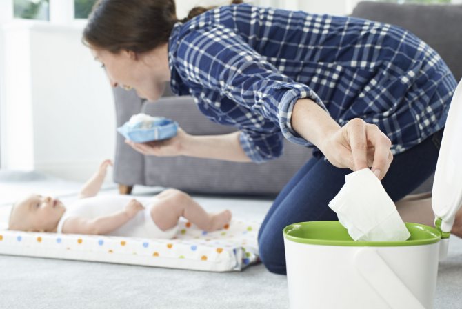 Внимание! Если нет возможности подмыть грудничка, разрешается использовать влажные салфетки. К этому лучше прибегать редко – может возникнуть раздражение от некачественной очистки.
