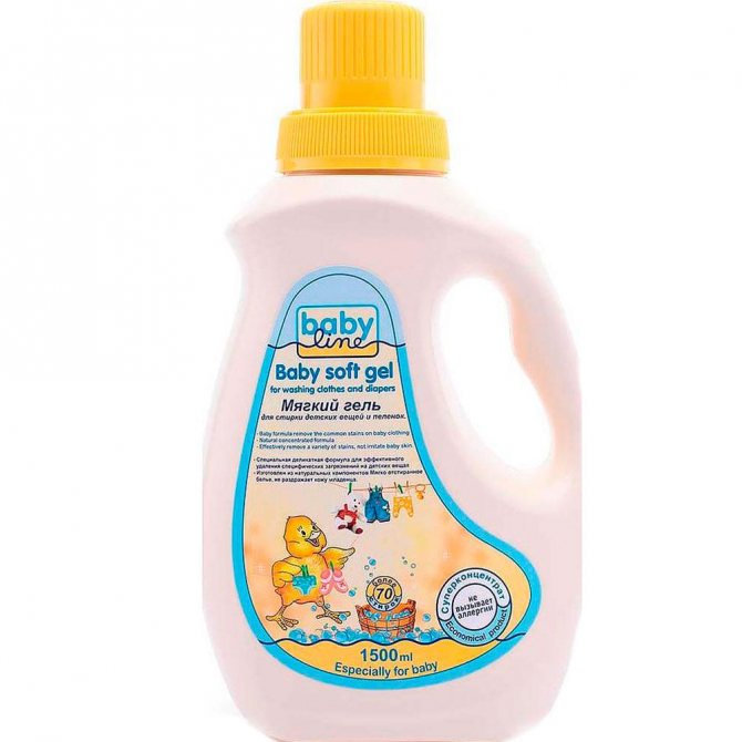 - Для стирки покупают специальное детское средство. В нем нет вредной химии, на которую может среагировать малышка. Его нужно использовать хотя бы первые месяцы жизни крохи, желательно до 2-3 лет.