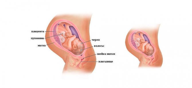 На этом сроке организм женщины активно готовится к родовому процессу. Основные изменения, конечно же, происходят в матке, возвышающейся над лобковым сочленением примерно на 40 см. Это проявляется в укорачивании и размягчении шейки матки. Ведь скоро через нее будет проходить малыш, который не должен получить травм.