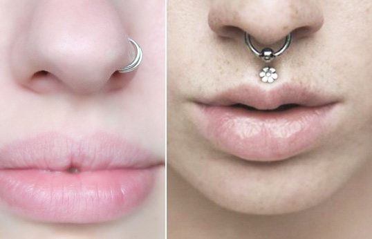 Пирсинг с обеих сторон носа