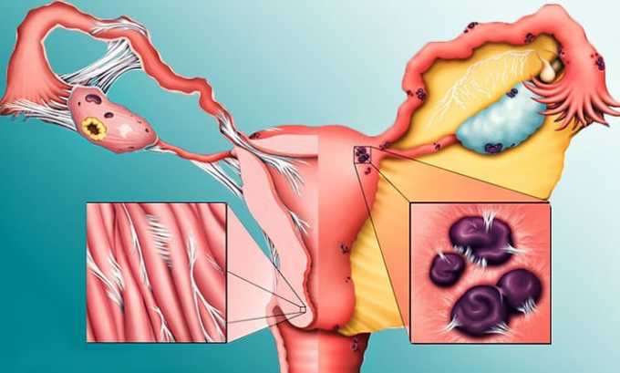 - Для лечения эндометриоза – заболевания, сопровождающегося возникновением участков слизистой, склонных к ежемесячному отслоению и кровотечению.