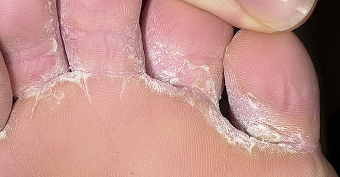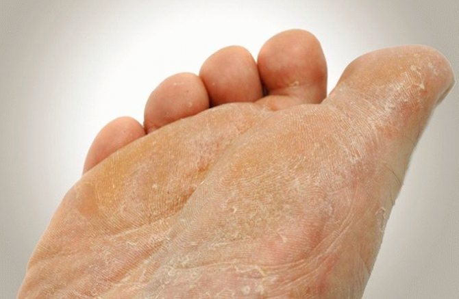 - Сквамозная форма. Присутствие мелких чешуек между пальцами и на поверхности подошвы. Без иных признаков воспаления, кроме легкого зуда.