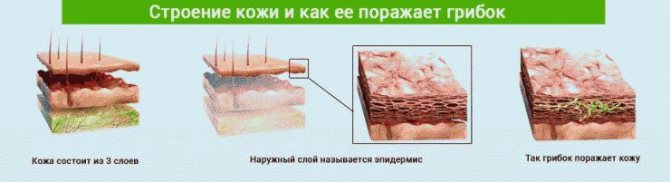 Локализация грибка на верхнем слое кожи с благоприятной для их жизнедеятельности средой, вызывает активный грибковый рост и размножение, провоцируя развитие инфекции. Расчесы и раны на пораженной грибком коже, способствуют проникновению инфекции в базальный и ретикулярный (глубокий) дермальные слои, а так же разнос ее по организму посредством кровотока.