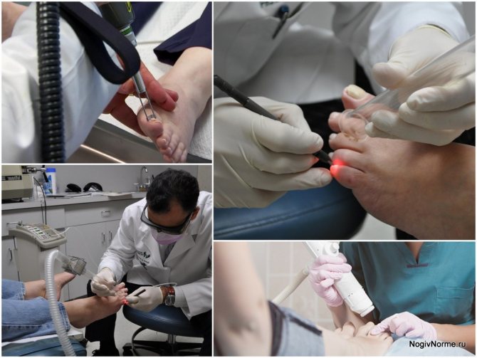 Перед назначением консервативной терапии лечения грибка ногтей и стопы препаратами, назначаются подготовительные методики по устранению ороговелостей кожных покровов, избавления от чешуек и мозолей, отечности и воспаления. Это достигается путем: