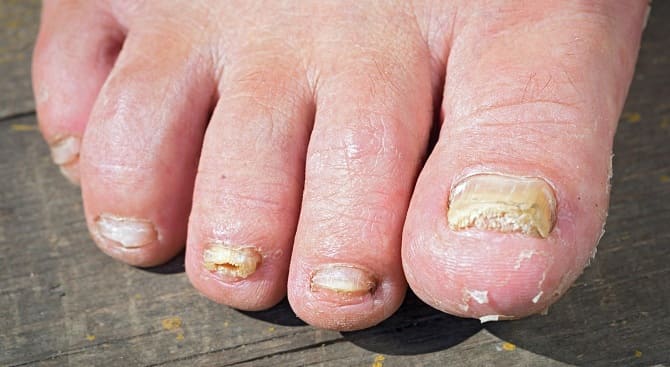 У человека могут поражаться и ногти ног. Отличить заболевание можно по следующим симптомам.