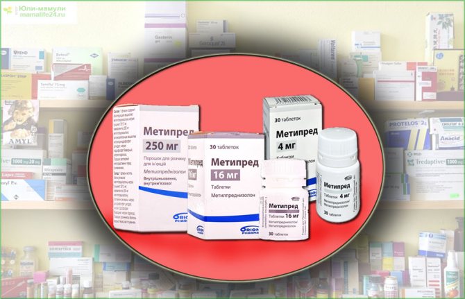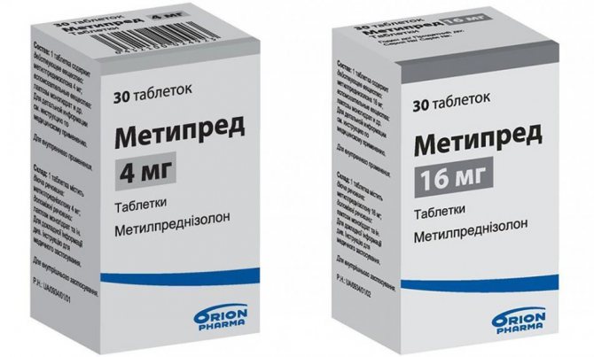 | Метипред в виде таблеток | Метипред в виде лиофилизата для приготовления раствора |