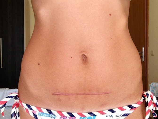 - классический поперечный разрез (горизонтальный разрез внизу живота)