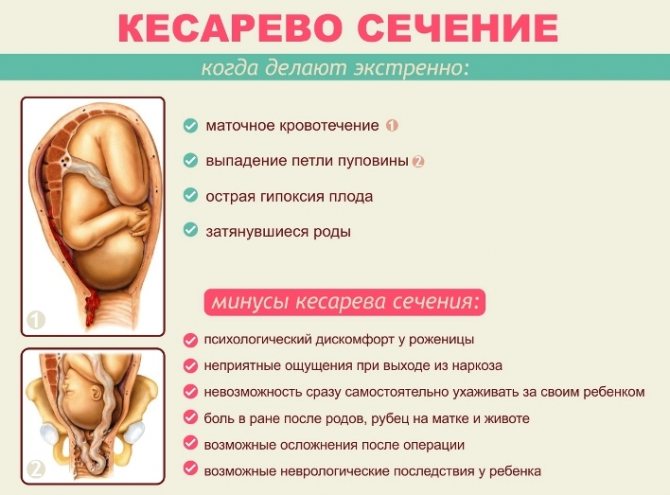Экстренное кесарево сечение проводится при осложнениях в естественных родах, угрожающих здоровью матери и малыша. Чаще всего при экстренном извлечении плода врачи делают вертикальный разрез (от пупка к лобковой зоне, а вскрытие стенки матки происходит продольно). По-другому он называется корпоральным и предполагает наложение узлового шва. Такой шов делается редко и не отличается красотой, так как он заметен, а со временем становится толще и сильно увеличивается в размерах. Причины для проведения операции могут быть следующими: