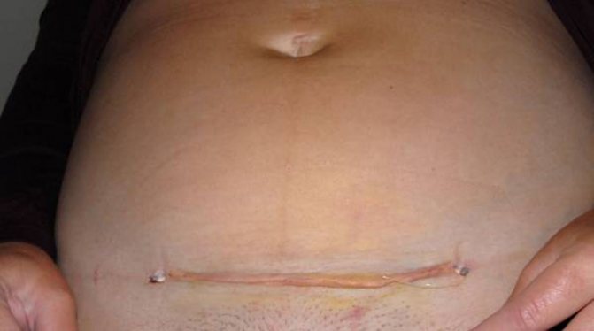 Горизонтальный шов при кесаревом сечении бывает косметическим, а иногда для его наложения используются скобы