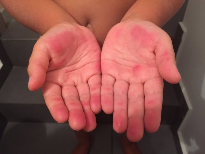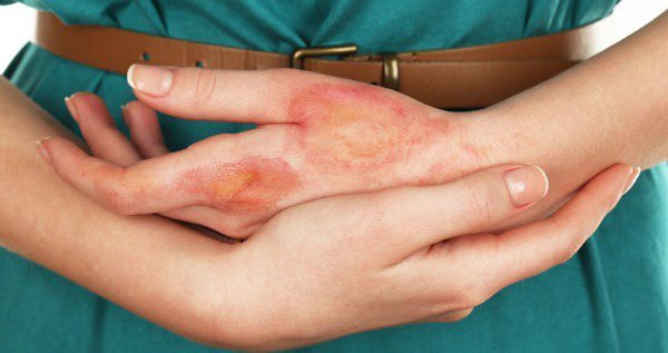 Начинается экзема с проявления пятен красного или розового цвета, вызывающих чувство жжения и зуда. Обычно место ее дислокации — кисти рук, особенно между пальцами, локти, колени, шея и кожа под волосами.