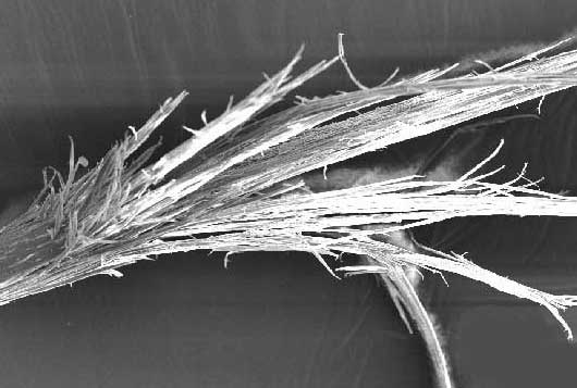 Рис. 10. Trichophyton ectothrix: споры возбудителей окутывают волос снаружи, как муфта (фото слева). Trichophyton endothrix: внутренняя часть волоса набита спорами (фото справа).