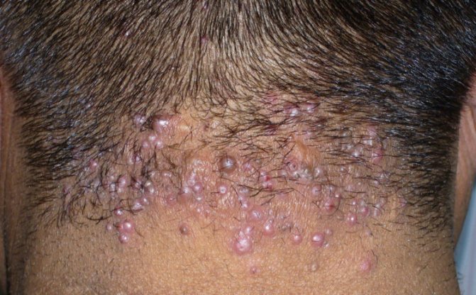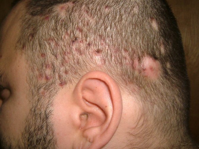 Рис. 13. Гнойное воспаление фолликулов в области головы.