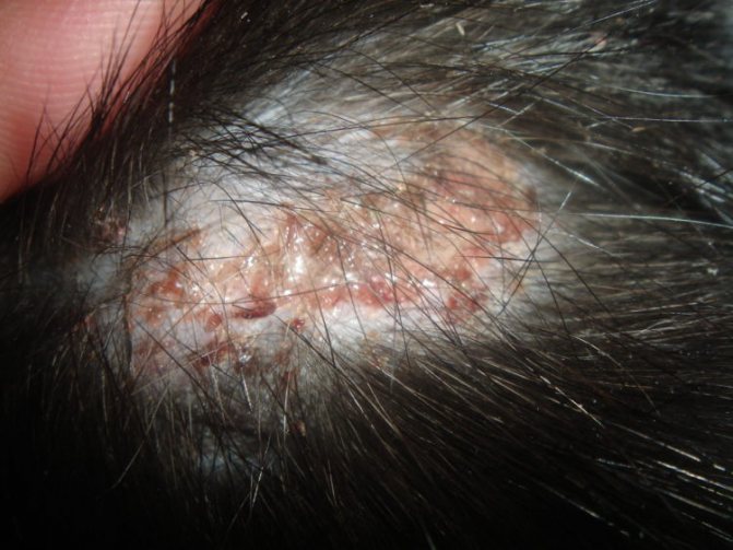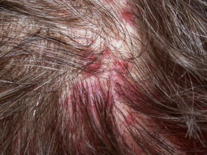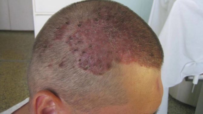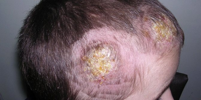 Инфильтративно-нагноительная форма грибка кожи головы