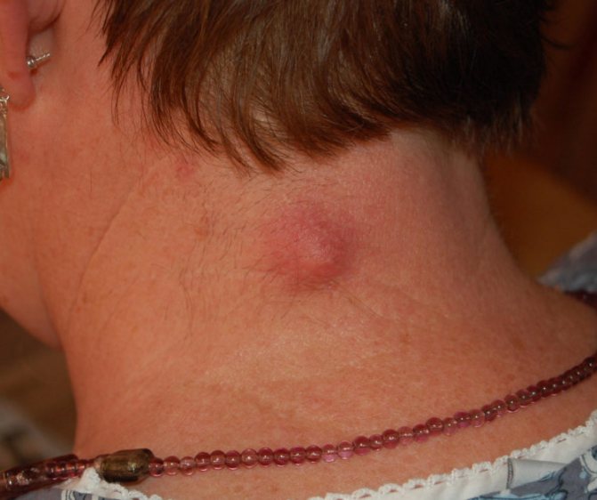 Рис. 14. Очаг нагноения на голове — керион, напоминает большой абсцесс.