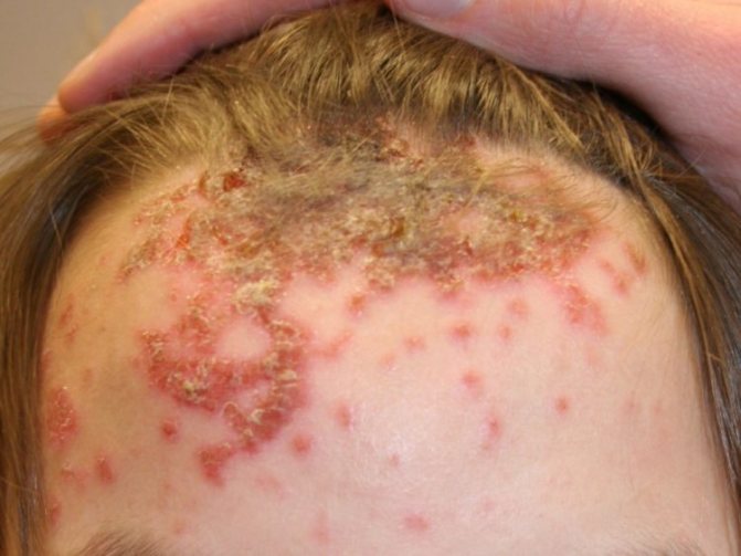 При сквамозной форме заболевания поражение кожи головы напоминает себорейную экзему, при импетигинозной форме на участках поражения появляются пустулы.