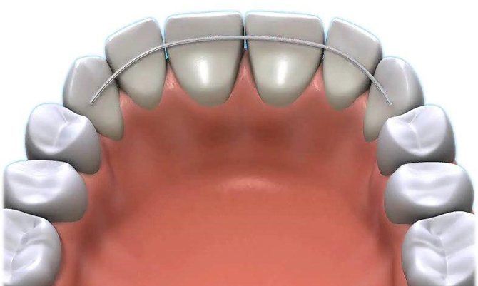 Несъемные ретейнеры имеют вид фиксирующей проволоки-дуги, которая крепится по внутренней стороне зубов (на вестибулярной поверхности). Для изготовления используется проволока или специальная риббонд-лента.