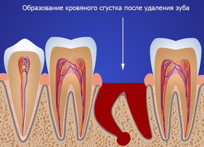 В течение получаса после того как зубной корень удалили из лунки, в ране образуется кровяной сгусток, который противодействует инфицированию. Если его повредить, то рана воспалится. Поэтому следует быть предельно осторожным и следить за тем, чтобы не выполоскать или не сдвинуть сгустком языком.